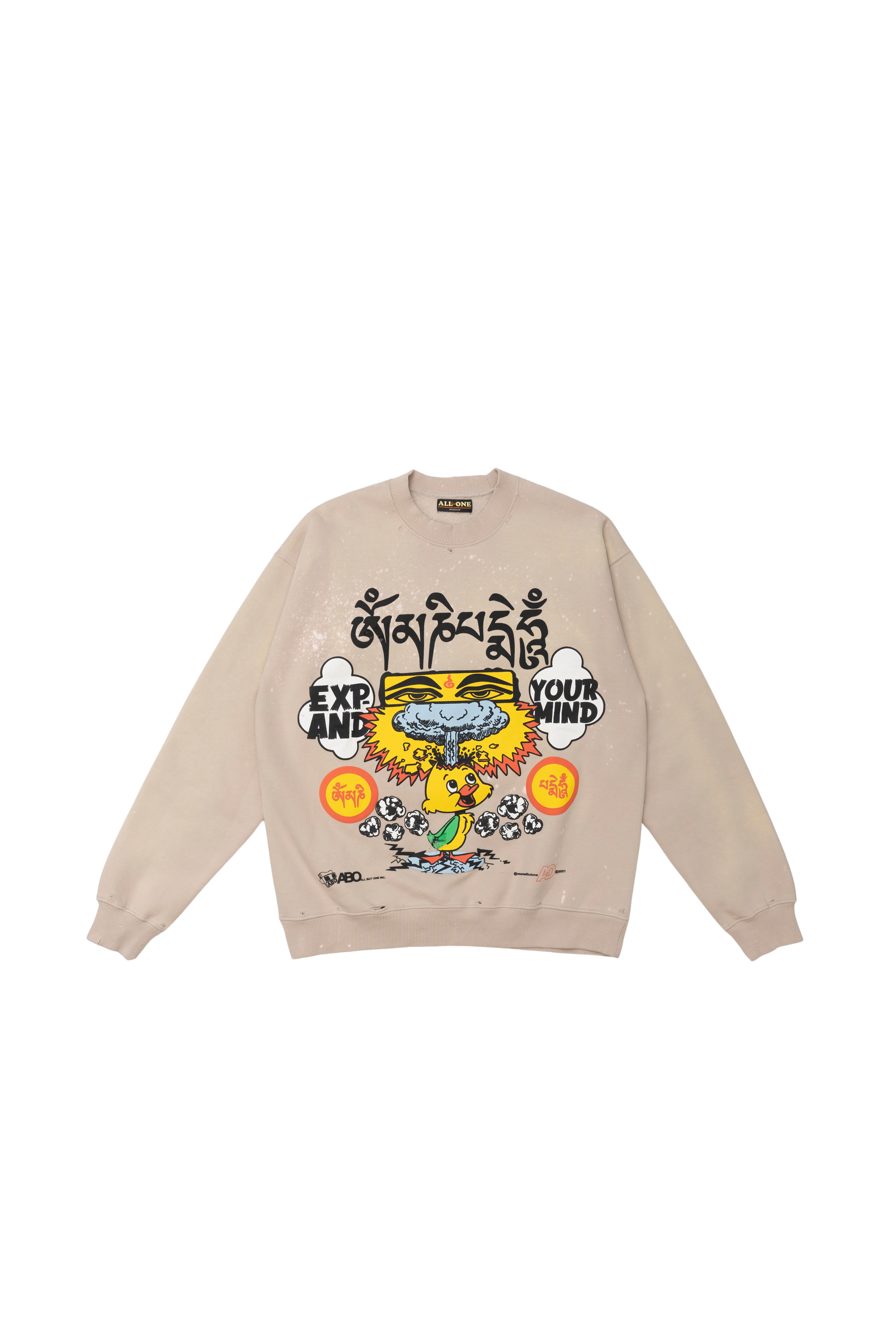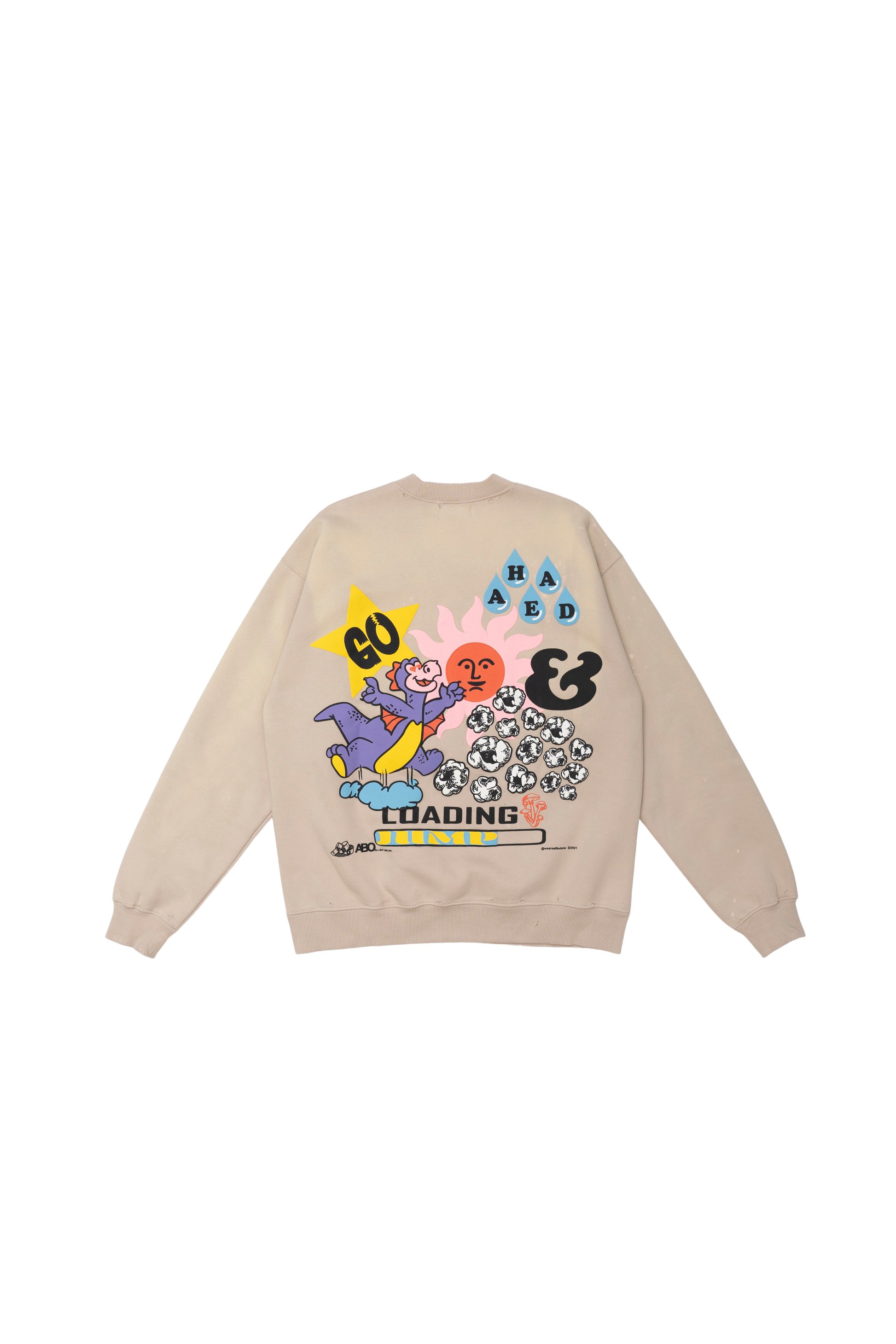 Distressed wash effect, Heavy weight cotton/fleece with big puff prints on front and back for a grungy 90s look and feel.